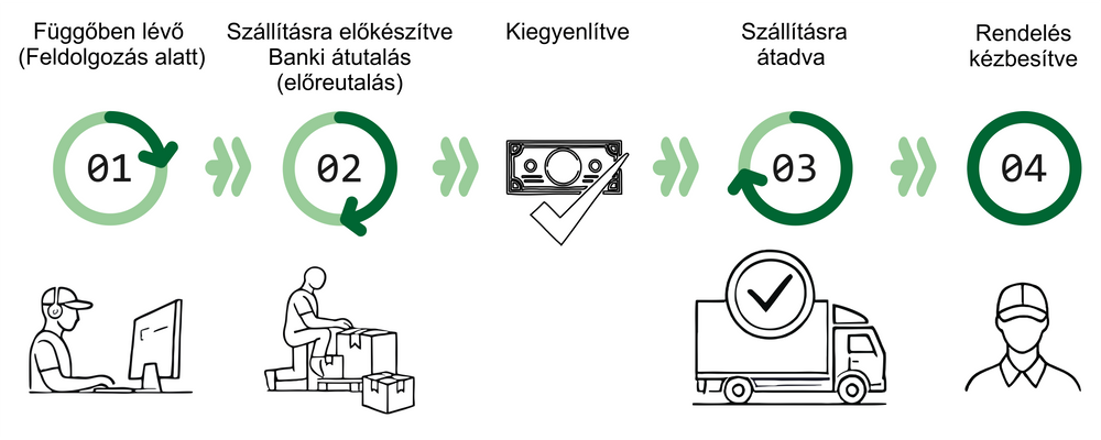 - A Banki átutalás (előreutalás) esetén díjbekérő számla kerül kitöltésre, amelyet a megrendelés összekészítését követően e-mailben küldünk. A vásárló a díjbekérő alapján egyenlíti ki az összeget, majd a termékek a végösszeg beérkezése után kerülnek átadásra a futárszolgálatnak.